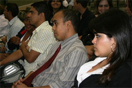 Na última quarta-feira (26), acadêmicos do curso de Ciências Contábeis da Universidade Católica Dom Bosco (UCDB) acompanharam, no anfiteatro Dom Aquino (bloco B), três eventos simultâneos: Comemoração dos 40 anos do curso, uma palestra sobre o Registro da profissão e a passagem de cargo da diretoria do Centro Acadêmicos de Ciências Contábeis (CACCO).