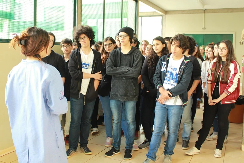 Nesta quinta-feira (16), estudantes do ensino médio do Colégio Classe A, puderam conhecer a Universidade Católica Dom Bosco (UCDB) por meio do Dia de Campus, promovido pela Área de Relacionamentos (SeR) da Instituição. A visita teve início na Fazenda-Escola, onde os 47 alunos tiveram contato com as pesquisas desenvolvidas na área de ciências agrárias que envolve os cursos de Zootecnia, Agronomia e Medicina Veterinária.
