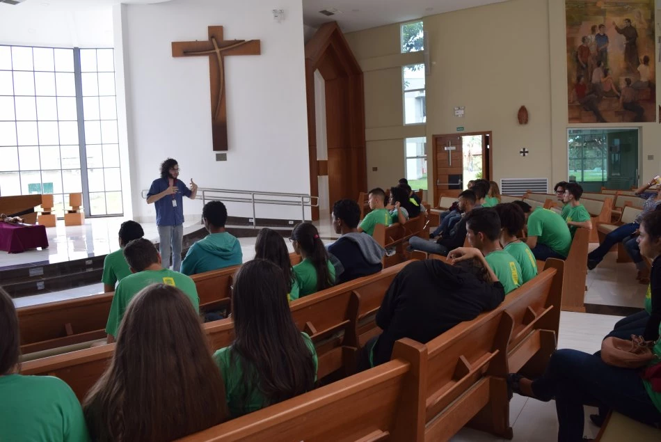Nesta quinta-feira (6), além da turma de Matheus, estiveram na Instituição os alunos do 2º ano do Ensino Médio que estudam na mesma escola. Acompanhados por colaboradores Setor de Relacionamento (SeR) da UCDB, eles percorreram o campus e puderam conversar com acadêmicos e professores de cada curso oferecido pela Católica.