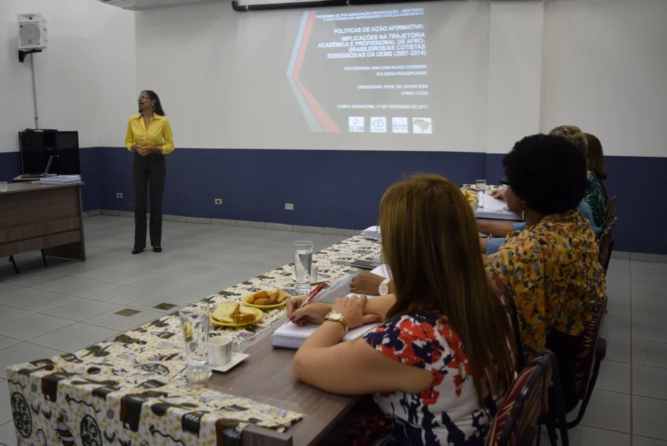 A aluna do Programa de Pós-Graduação em Educação Ana Luisa Alves Cordeiro foi orientada pelo professor Dr. Ahyas Siss e abordou o tema Políticas de ação afirmativa: implicações na trajetória acadêmica e profissional de afro-brasileiros/as cotistas egressos/as da UEMS (2007-2010).