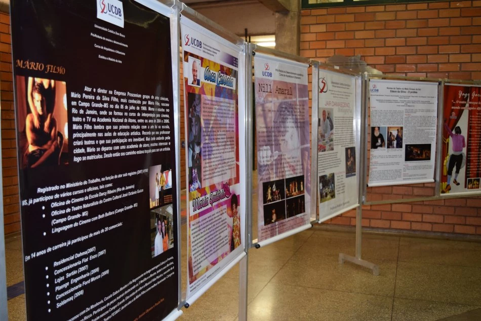 Composta por 32 banners produzidos pelos acadêmicos do 2° semestre dos cursos de Arquitetura e Urbanismo, juntamente com o 3° semestre de História, a exposição conta sobre a vida e trajetória dos principais nomes do teatro de Campo Grande.