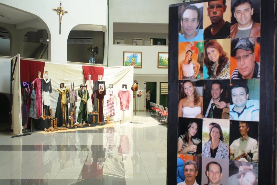 Em continuidade às comemorações dos 30 anos do grupo de teatro Senta que o Leão é Manso, o setor de Cultura e Arte da Universidade Católica Dom Bosco (UCDB) expõe, até sexta-feira (4), no saguão do bloco Administrativo, fotografias, figurinos e fotos dos ex-integrantes do grupo e dos cenários utilizados em várias peças teatrais.