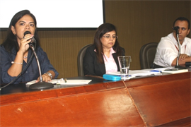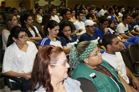 Em seguida, foi formada a mesa-redonda “A extensão universitária: Extensão e Interdisciplinaridade”, quando a Pró-Reitora Dra. Luciane Pinho explicou o tema apontando seus aspectos e valores. Os professores Me. Fernando Pierette e Dr. Alexandre Menezes contaram um pouco sobre a experiência deles nos projetos Diálogos Pertinentes e Vivências Agrárias, respectivamente. O debate foi moderado pela coordenadora do setor de Projetos Comunitários, Me. Salette Marinho.