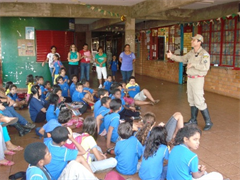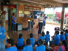 Os alunos do estabelecimento escolar, localizado na Comunidade Tia Eva, em Campo Grande, participaram também de uma palestra ministrada pelos militares do Corpo de Bombeiros, 2º Sargento Alencar, 2º Sargento Negrete e Cabo Ojeda, representando o Coronel Pereira dos Santos, Comandante Metropolitano do Corpo de Bombeiros de Campo Grande, entrevistado pelo Informativo.