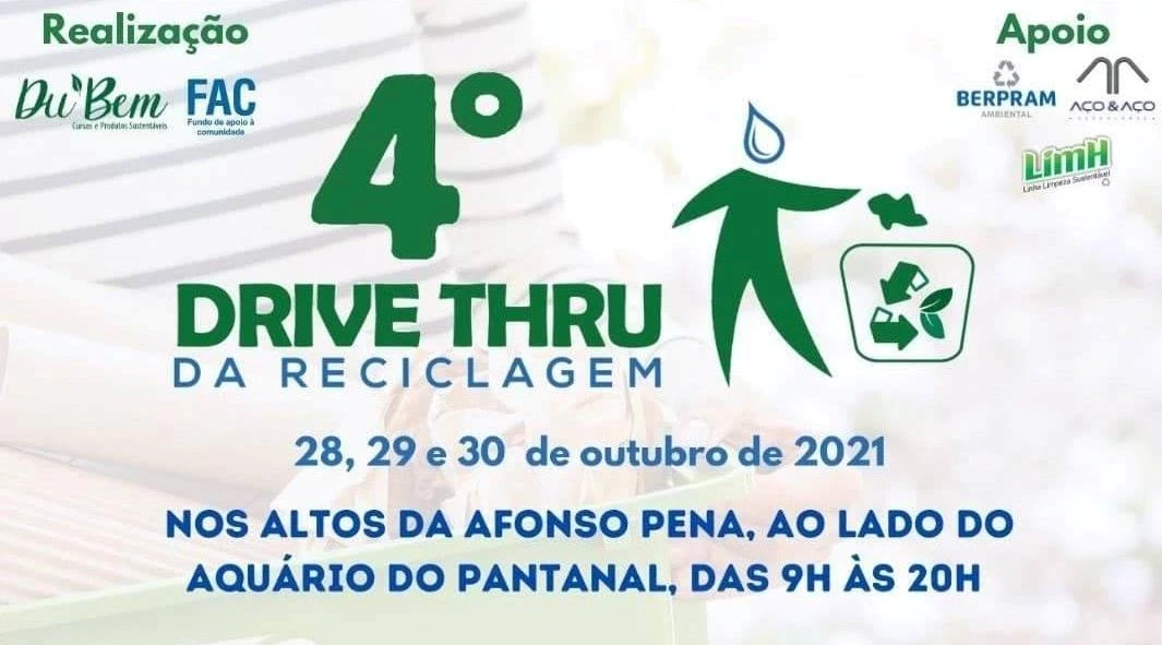 Acadêmicos de Publicidade e Propaganda e extensionistas do projeto Click Verde da Universidade Católica Dom Bosco (UCDB) participam da quarta edição do Drive-Thru da Reciclagem, que será realizada até sábado, nos altos da Afonso Pena, ao lado do Aquário do Pantanal.