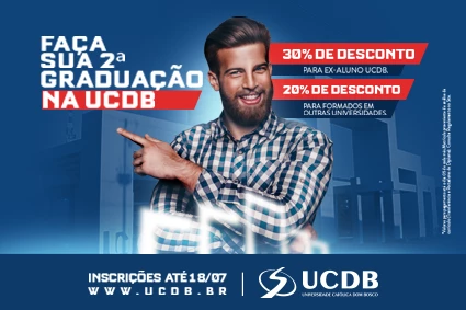 Se você é formado, mas quer cursar uma segunda graduação já pode participar do processo seletivo para portadores de diploma da Universidade Católica Dom Bosco e garantir preços especiais nas mensalidades. Ex-alunos da UCDB podem ganhar até 30% de desconto no valor de cada parcela e os formados em outras instituições de ensino superior podem ter abono de até 20%. Vale lembrar que o decréscimo é válido caso o pagamento da parcela seja feito até o dia 5 de cada mês.