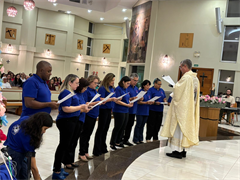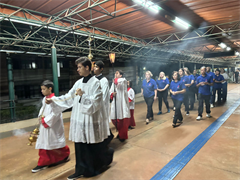 A Paróquia Universitária São João Bosco, na Universidade Católica Dom Bosco (UCDB), celebrou no último domingo (25) a cerimônia de promessas de novos(as) Salesianos(as) Cooperadores(as). A solenidade teve início com uma procissão em homenagem ao Dia de Nossa Senhora Auxiliadora (24 de maio), que saiu da capela do bloco A e seguiu até a igreja São João Bosco. A missa foi presidida pelo presidente da Missão Salesiana de Mato Grosso e Chanceler da UCDB, Pe. Ricardo Carlos, e concelebrada por Pe. Rafael Gustavo Santos Souza Lopes e Pe. Idenilson Lemes da Conceição.