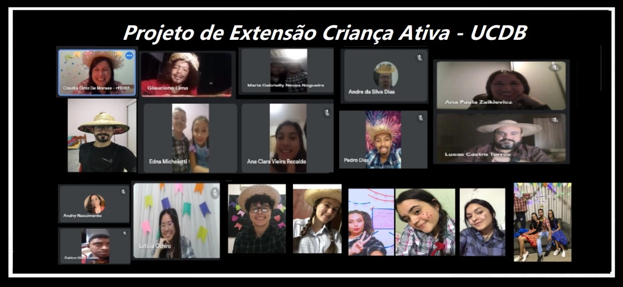 As atividades do primeiro semestre do projeto de extensão Criança Ativa foram encerradas na última segunda-feira (5) com uma Festa Caipira. Professores e acadêmicos extensionistas, vestidos a caráter, brincaram e se divertiram com as crianças na reunião virtual.