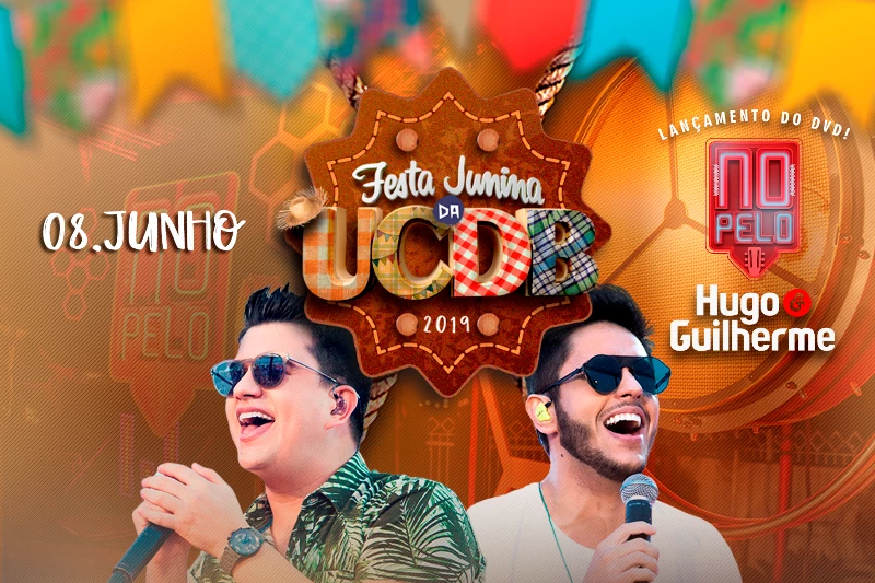 Este ano, a maior festa junina universitária de Mato Grosso do Sul será realizada no dia 8 de junho e traz como atração principal a dupla goiana Hugo e Guilherme. Os cantores seguem na música desde 2015, com sucessos como “Conveniência”, “Na maldade” e “Imagina”. Além de terem conquistado todo o Brasil, eles já têm uma afinidade com a capital sul-mato-grossense onde gravaram o terceiro DVD — “No pelo em Campo Grande”. A dupla dividiu o palco com Henrique e Juliano e Marília Mendonça e apresentou os novos hits “Teste da mãozinha” e “Toda ida pede volta”.