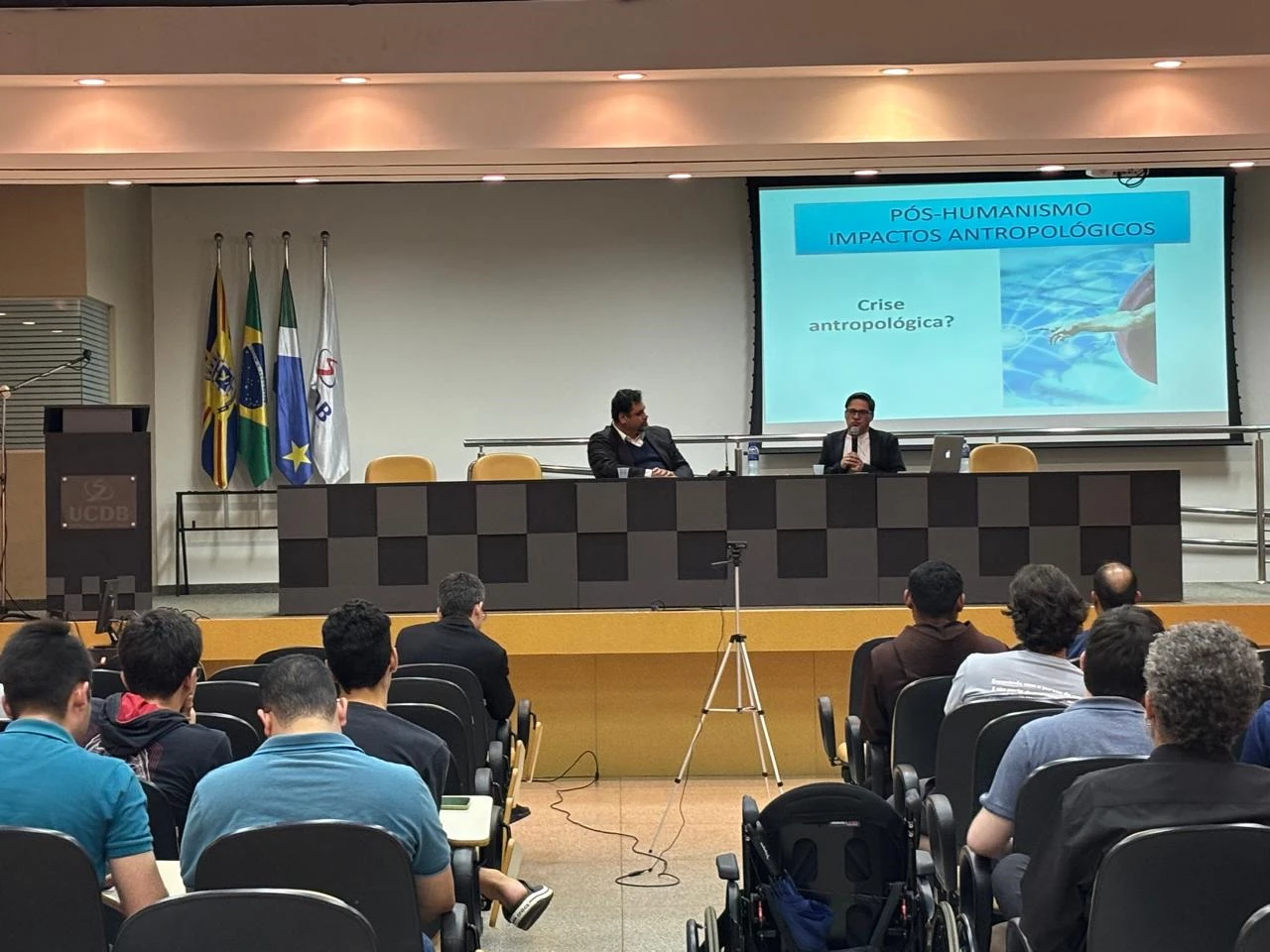"Diálogos interdisciplinares - Pós-Humanismo: Há uma Crise Antropológica?" foi o tema da palestra de abertura. “O pós-humanismo é visto como uma resposta às transformações tecnológicas e sociais que desafiam a definição de humanidade e a relação do ser humano com a tecnologia”, destacou Marques.