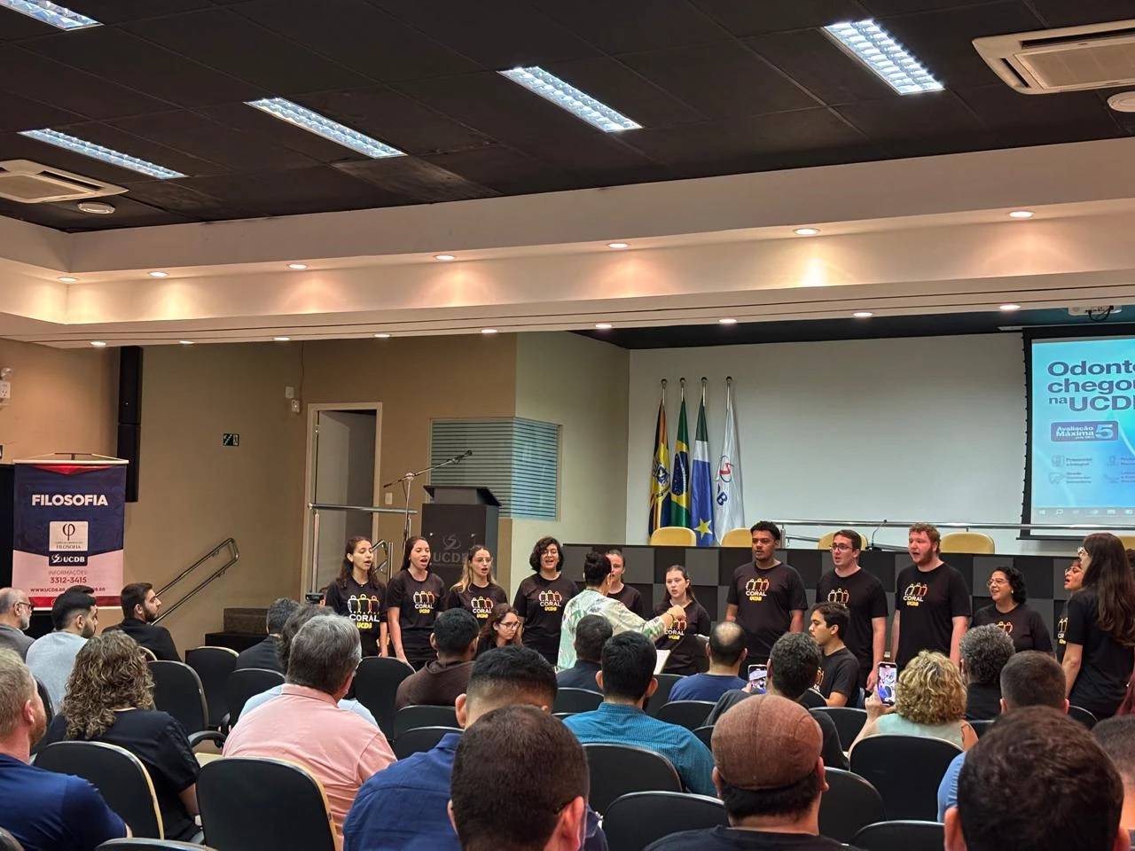Eles debateram ainda o impacto das inovações biotecnológicas, da inteligência artificial e das implicações éticas que essas mudanças trazem para a compreensão da existência humana. A abertura contou também com a apresentação do Coral UCDB, regido pela professora Edna Palmeira Martins, com canções como “Belo”, “Notícias de Vida” e “A Padroeira”.