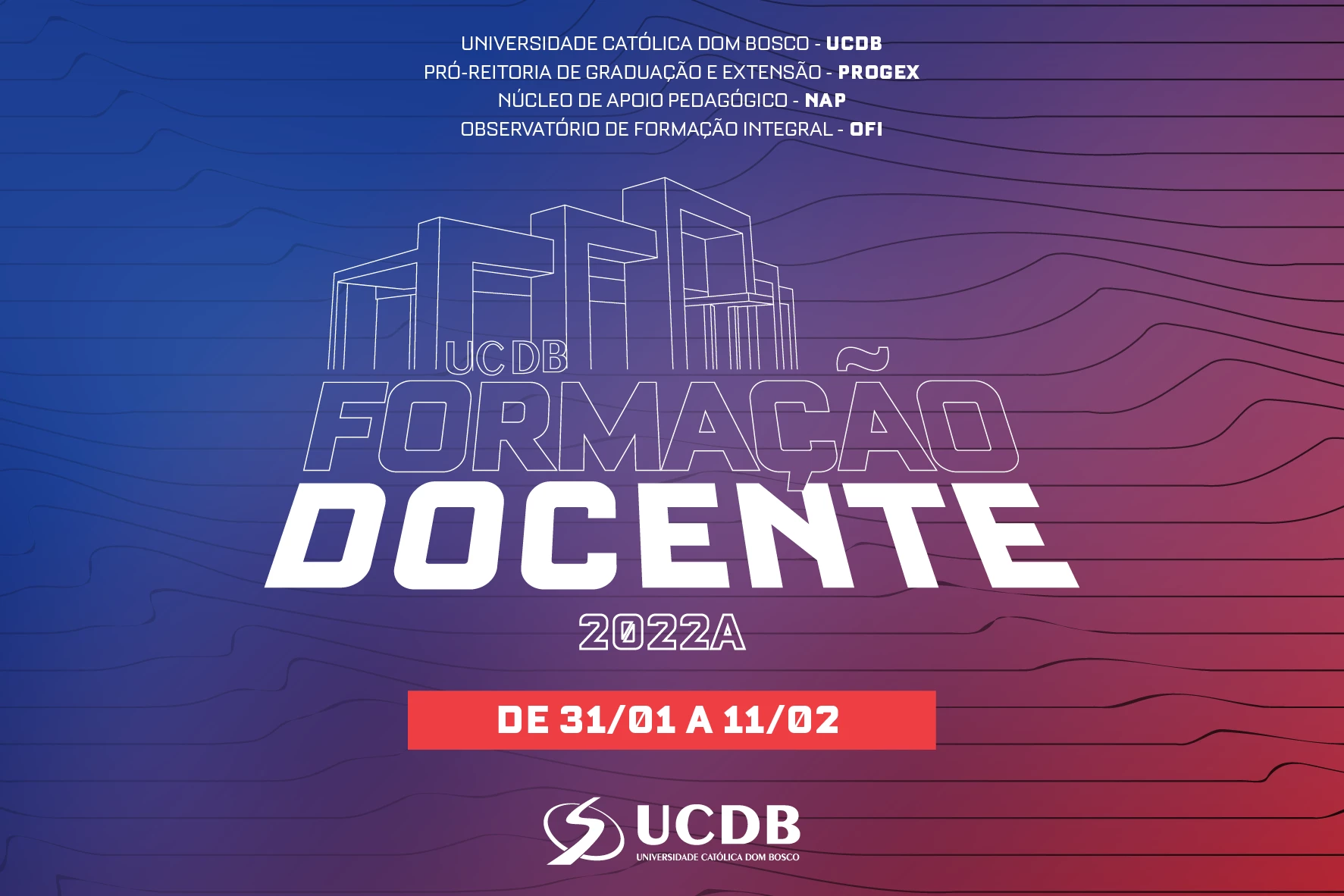 A Universidade Católica Dom Bosco (UCDB) realiza a partir de hoje (31) até 11 de fevereiro a ‘Semana de Formação Docente 2022’, com encontros remotos e presenciais, sempre atendendo às normas de biossegurança, organizada pela Pró-Reitoria de Graduação e Extensão, com apoio do Núcleo de Apoio Pedagógico (Nap), Observatório de Formação Integral e Planejamento e Formação Docente. As atividades começam com encontros de planejamento pedagógico dos cursos de graduação entre coordenação e corpo docente, que seguem até o dia 5, e amanhã (1º), a partir das 14h, oficina pedagógica no modelo on-line.