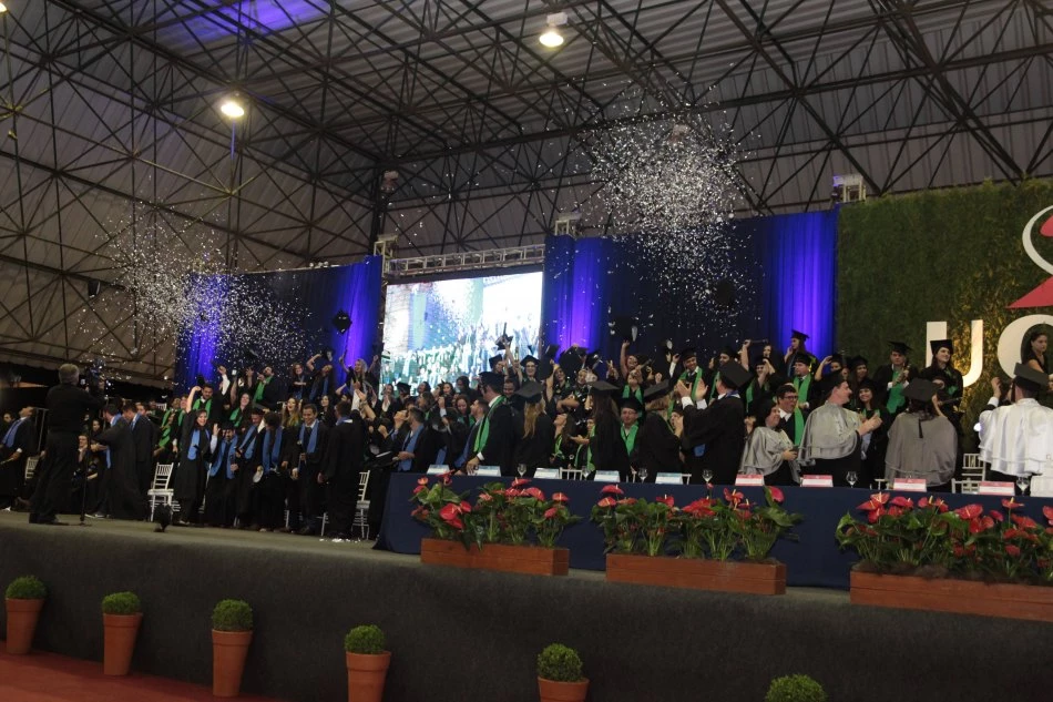 Nesta quarta-feira (13), formandos de 11 cursos da Universidade Católica Dom Bosco participam da cerimônia de Colação de Grau no complexo poliesportivo (quadras cobertas) do campus Tamandaré.