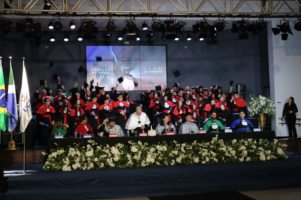 Os formandos de 16 cursos de graduação (Agronomia, Biomedicina, Ciências Biológicas, Design, Direito, Educação Física, Enfermagem, Farmácia, Fisioterapia, Gastronomia, Jornalismo, Medicina Veterinária, Nutrição, Psicologia, Publicidade e Propaganda e Zootecnia) da Universidade Católica Dom Bosco (UCDB) colaram grau ontem (11) na primeira noite da cerimônia oficial 2024A. O evento é realizado no Pátio UCDB, com transmissão ao vivo pelo canal da UCDB no YouTube e a presença de amigos e familiares.