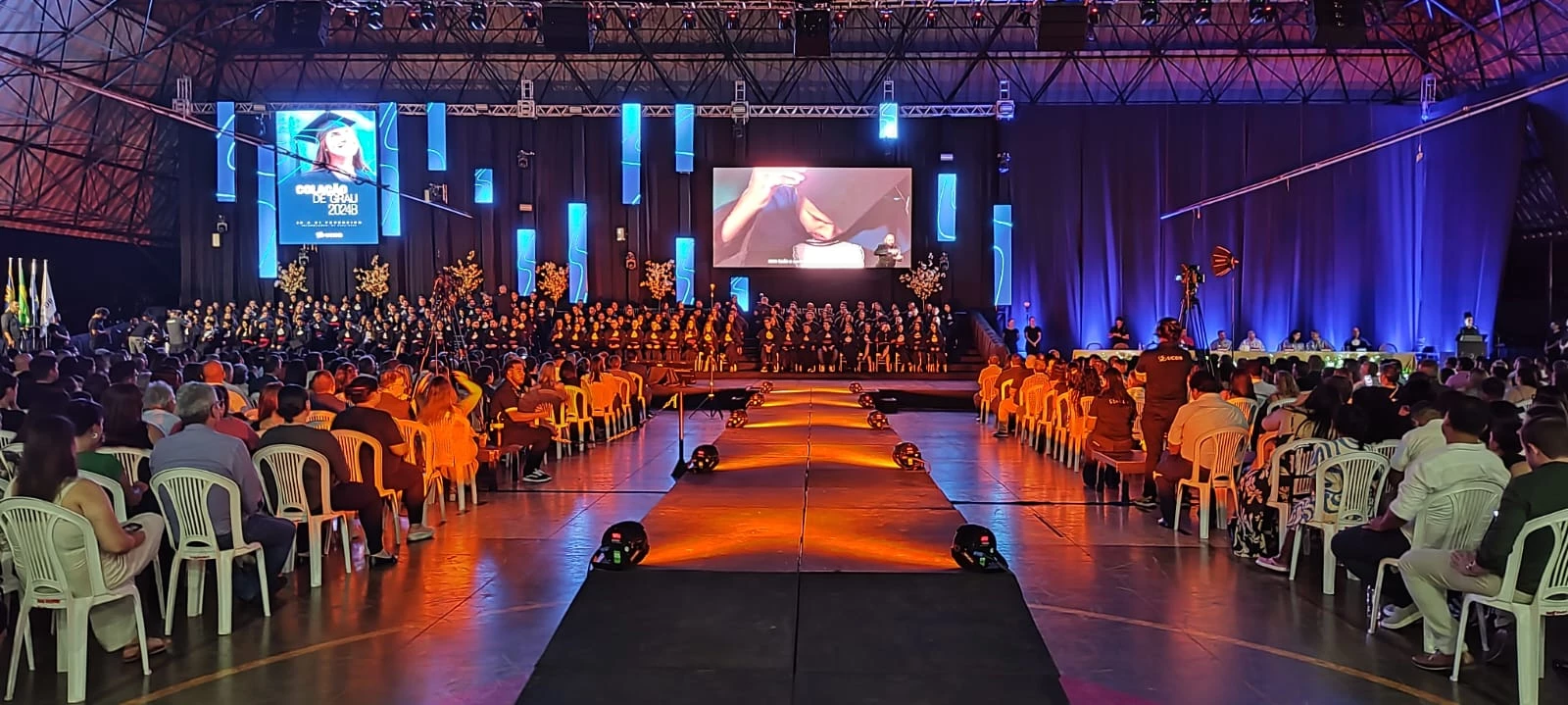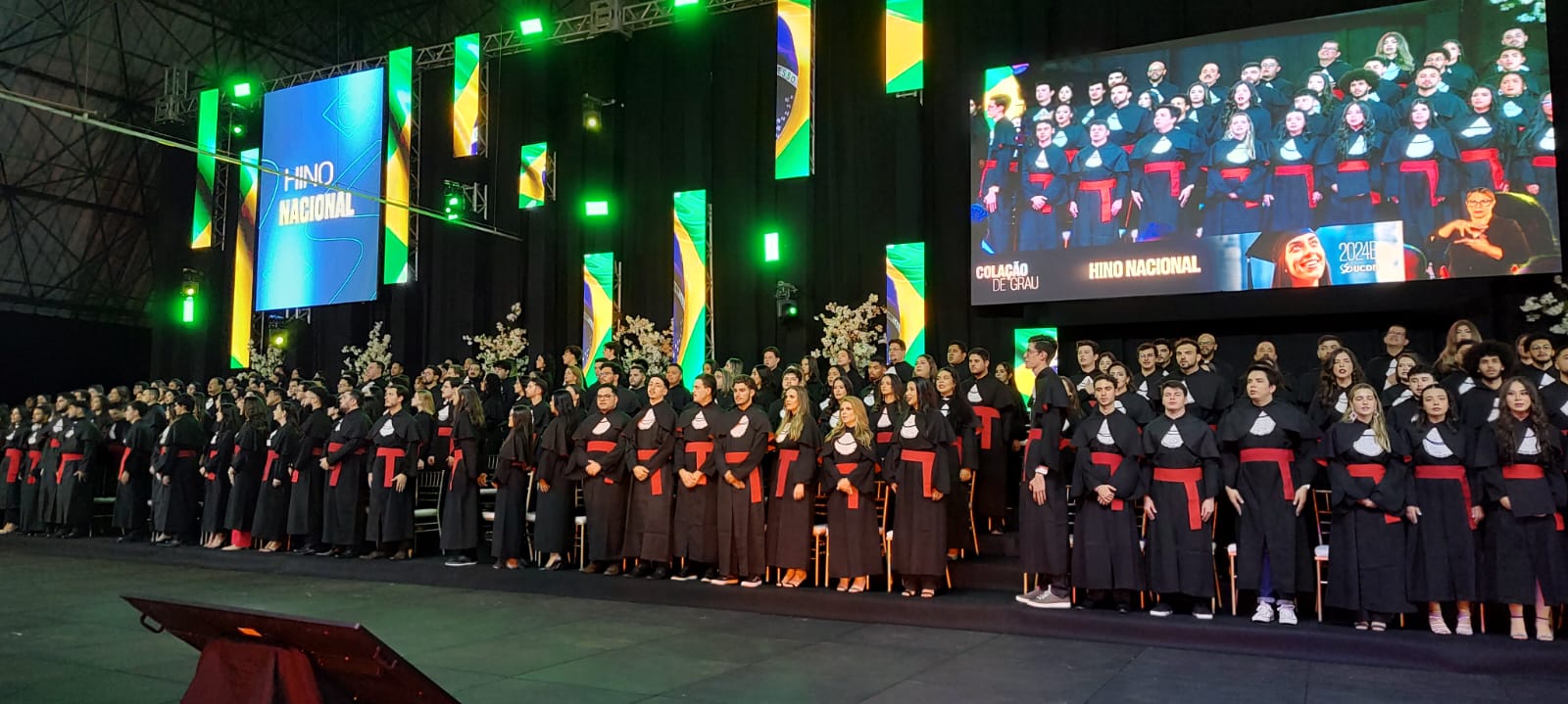 A primeira noite de colação oficial de grau da Universidade Católica Dom Bosco (UCDB) 2024B contou com a participação de formandos de quatro cursos: Design, Direito, Jornalismo e Publicidade e Propaganda. As cerimônias de colação de grau oficial seguem até amanhã (21) no complexo poliesportivo da Católica, com transmissão ao vivo pelo canal oficial da UCDB no Youtube.