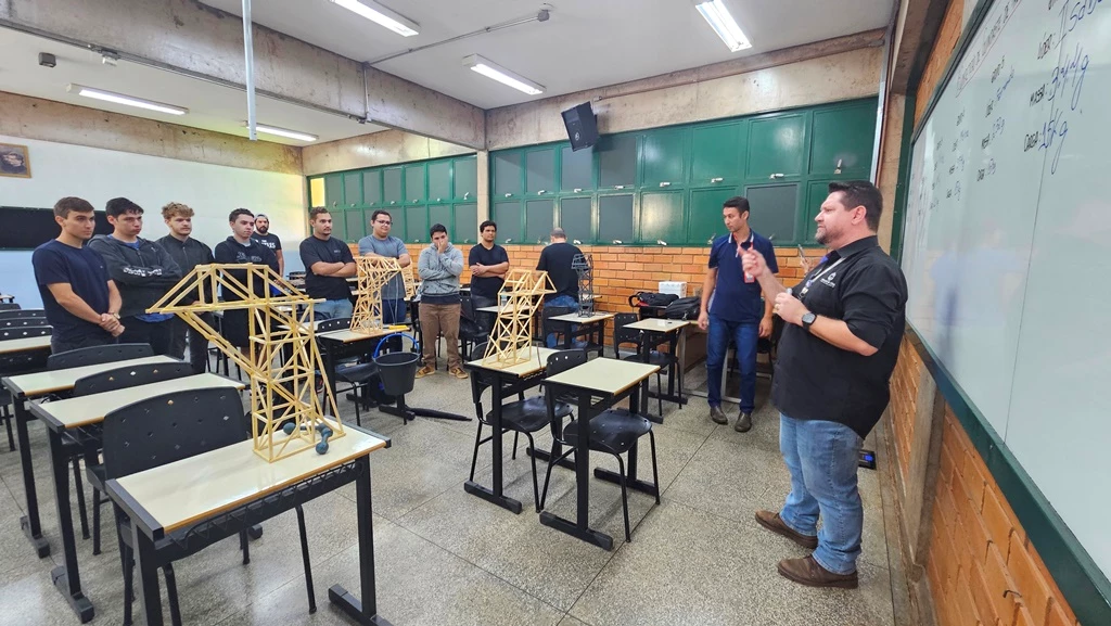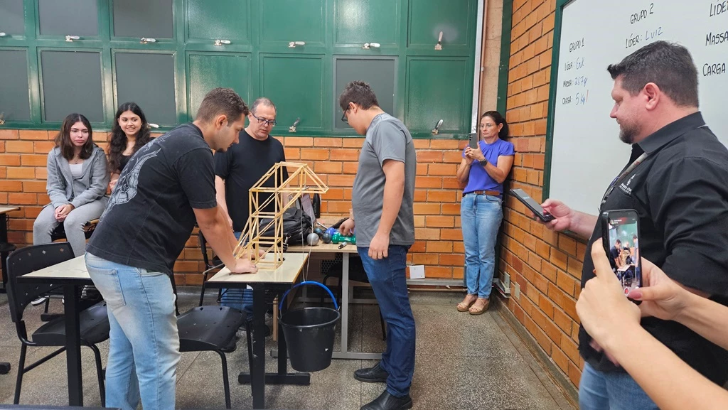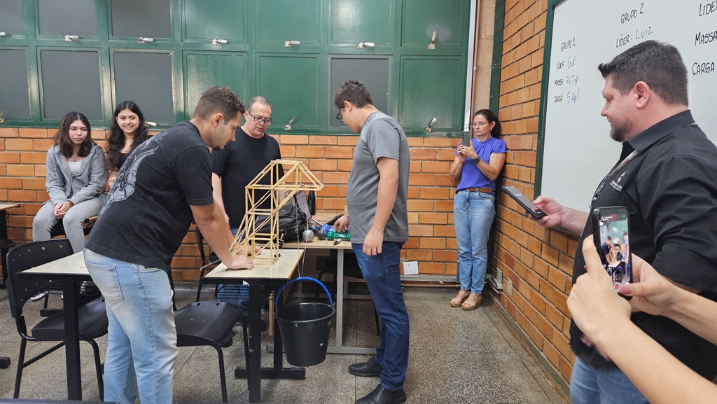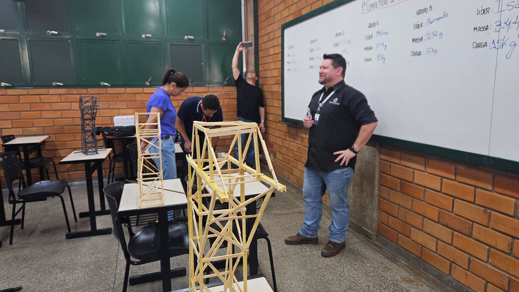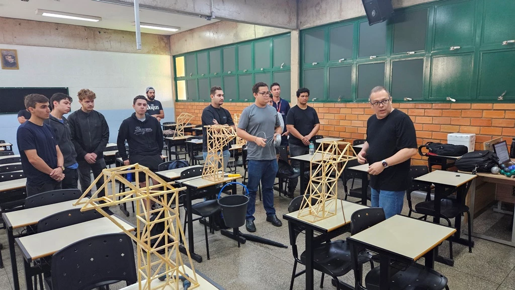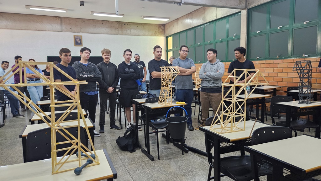 “Costumávamos promover concursos de pontes feitas de macarrão ou de disparo de foguetes de garrafa pet para que, de maneira lúdica, os alunos aplicassem alguns conceitos que discutíamos em sala de aula. Neste ano, surgiu a ideia do guindaste montado exclusivamente com palitos de picolé e cola. Unimos os dois cursos e abrimos a participação para todos os semestres”, explicou o professor Hilton Luiz Monteiro Junior que, junto com o professor Willian de Araújo Rosa, liderou o projeto.