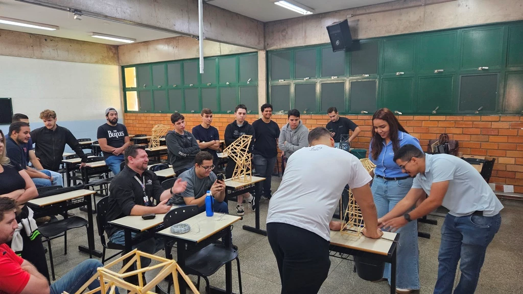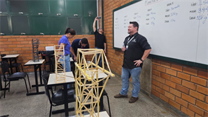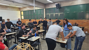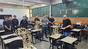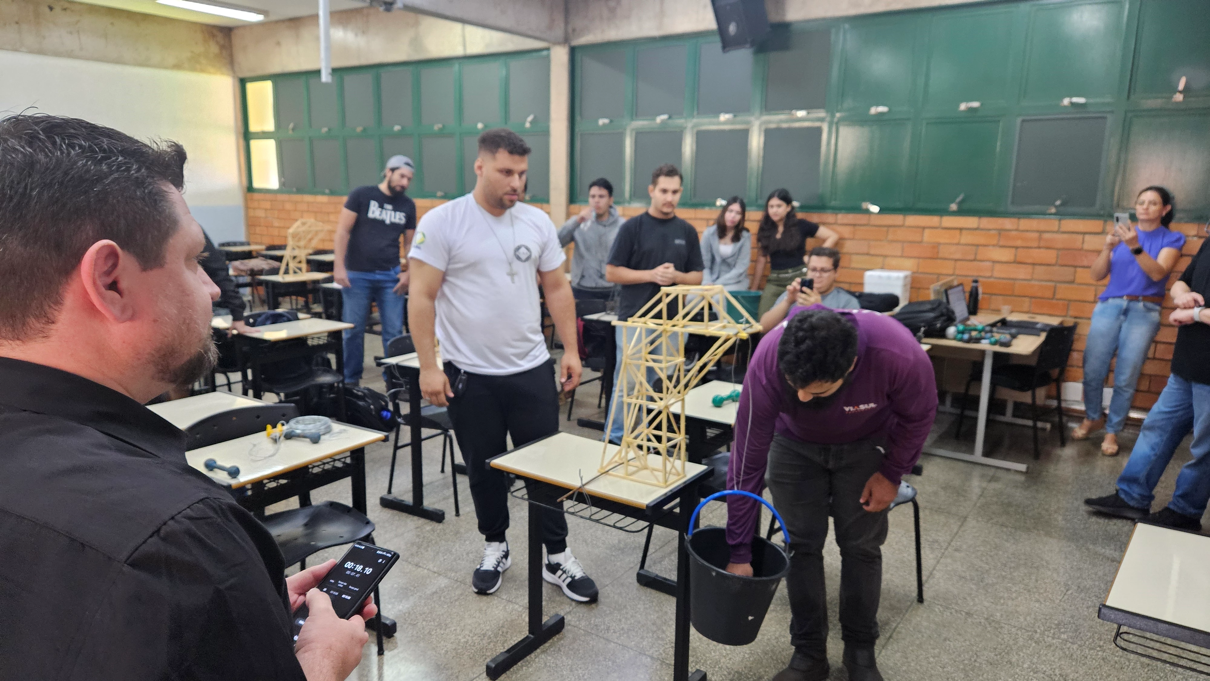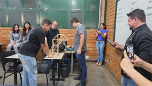 Futuros engenheiros fazem competição de guindaste de palitos na UCDB