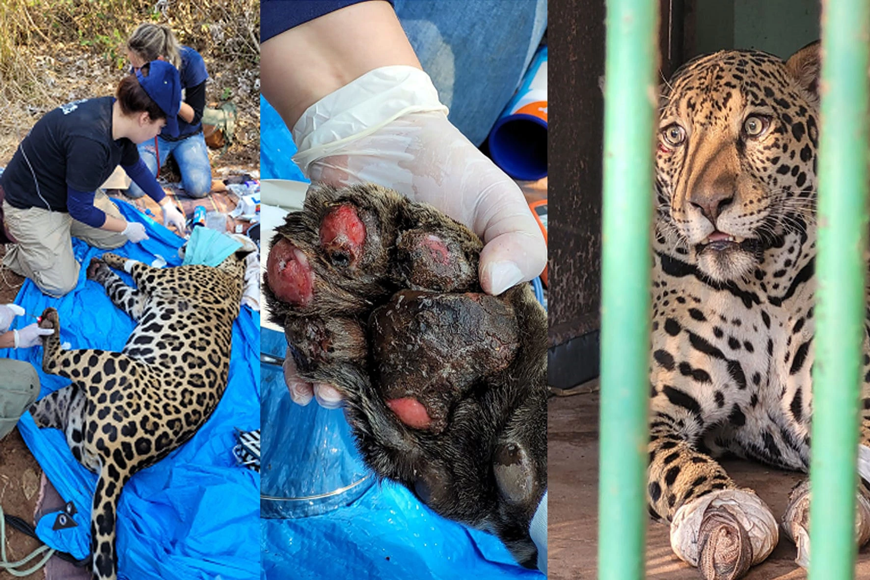 Gretap encaminha onça pintada vítima de queimadas para o CRAS