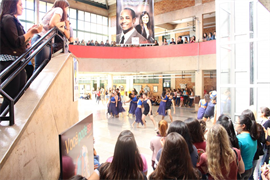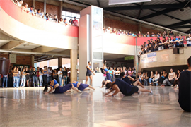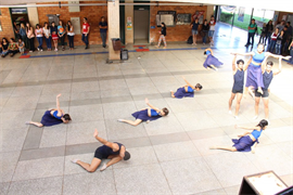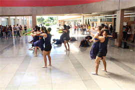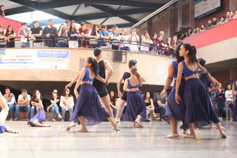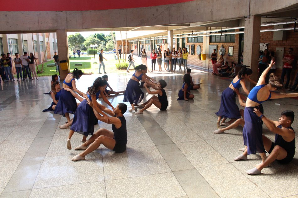 O grupo Ararazul, composto por 22 acadêmicos da Universidade Católica dom Bosco (UCDB), apresentou no intervalo de aula no período matutino desta quarta-feira (3) a coreografia “Constelação”, em comemoração do Dia da Dança (29 de abril). O grupo faz parte de um projeto de extensão da área de Cultura e Arte da Universidade.