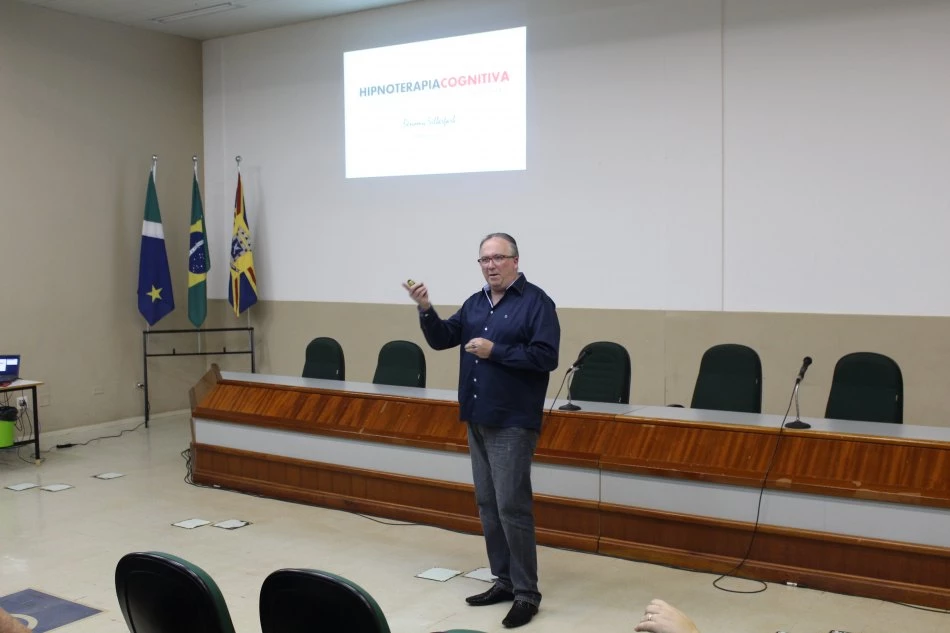 O professor e psicólogo clínico Benomy Silberfarb esteve na Universidade Católica Dom Bosco e preferiu palestra sobre Hipnoterapia Cognitiva para acadêmicos de Psicologia, Nutrição e Educação Física. O evento aconteceu na terça-feira (14), no anfiteatro da Biblioteca.