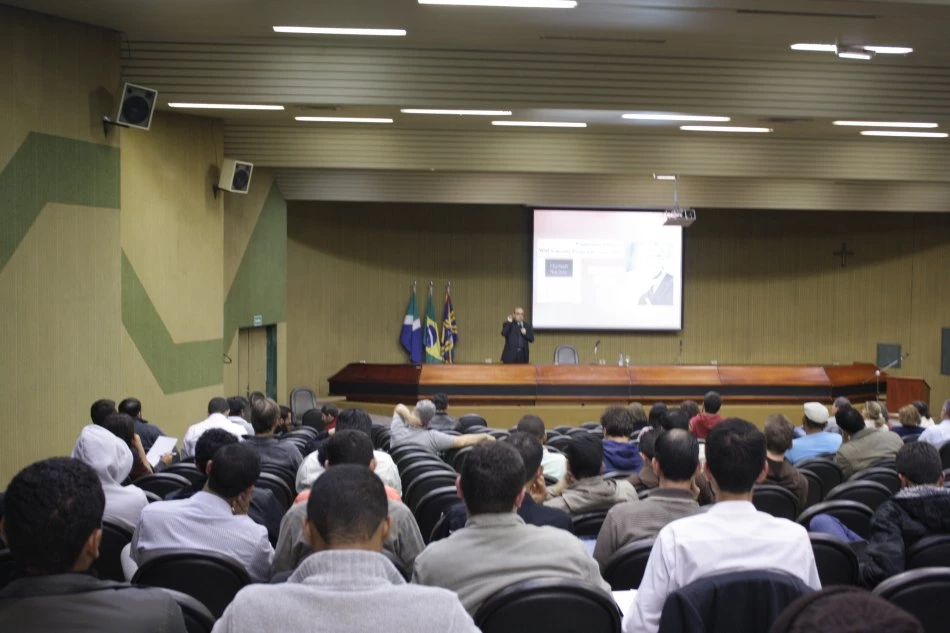 O evento que discute a família e a crise pós-moderna também é transmitido pela internet e os internautas podem mandar perguntas que são respondidas ao final da palestra.