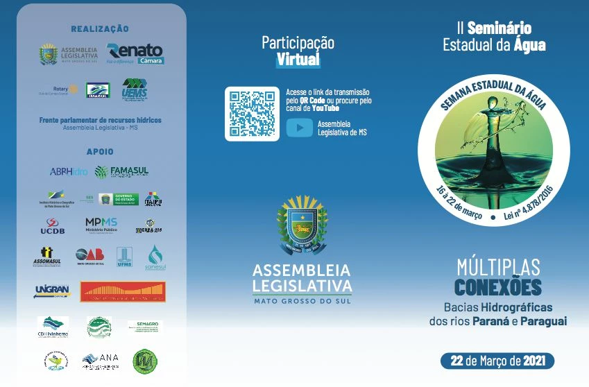 O evento integra as ações da Semana Estadual da Água e é uma realização conjunta do Imasul, da Frente Parlamentar de Recursos Hídricos da Assembleia Legislativa de Mato Grosso do Sul e do Rotary Club de Campo Grande, da UEMS, com apoio da UCDB e outras instituições parceiras.