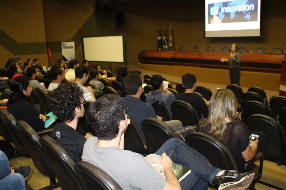 Leandra Oliveira da Costa, analista técnica do Sebrae e gestora do Living Lab MS — espaço criado para estimular o ecossistema de empresas que tenham como base inovação e tecnologia, falou sobre “Inovação e Startup”. Ela ressaltou que o momento econômico do país exige mudanças, principalmente nos novos negócios e, quando se fala em mercado, esta fase pede um sistema que seja colaborativo e permita o empoderamento dos profissionais envolvidos: “Em uma das lâminas da minha apresentação discuto essa vertente do empreendedorismo com auxilio da internet, então se formos analisar apenas as 12 características quando entrarmos para o mercado vamos notar a necessidade de inovar, precisamos desconstruir um olhar para que um novo mundo faça sentido”.
