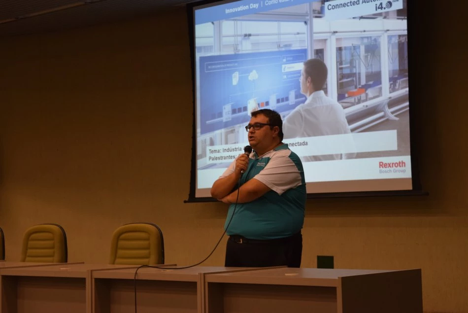 Alunos de Engenharia Mecânica, de Controle e Automação e de Computação da Universidade Católica Dom Bosco (UCDB) participaram de uma palestra com o funcionário de uma multinacional referência em engenharia e eletrônica, a Bosch Rexroth, Cristiano Mendonça. Tema debatido foi: “Indústria 4.0 – Manufatura Conectada”.