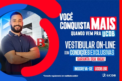A Universidade Católica Dom Bosco (UCDB) está com inscrições abertas gratuitamente para o Vestibular On-line 2024B. O candidato aprovado terá desconto de 40% na matrícula para qualquer um dos cursos de graduação da Católica, seja presencial, híbrido ou a distância.
