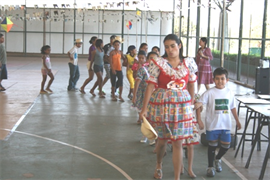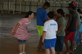 O arraial começou com a tradicional dança de quadrilha, que uniu professores e alunos do projeto. Mais tarde, foram servidas as típicas comidas da festa, como paçoca, arroz carreteiro, além de cachorro-quente. Diversas brincadeiras como pescaria e atividades físicas também fizeram parte do cronograma.
