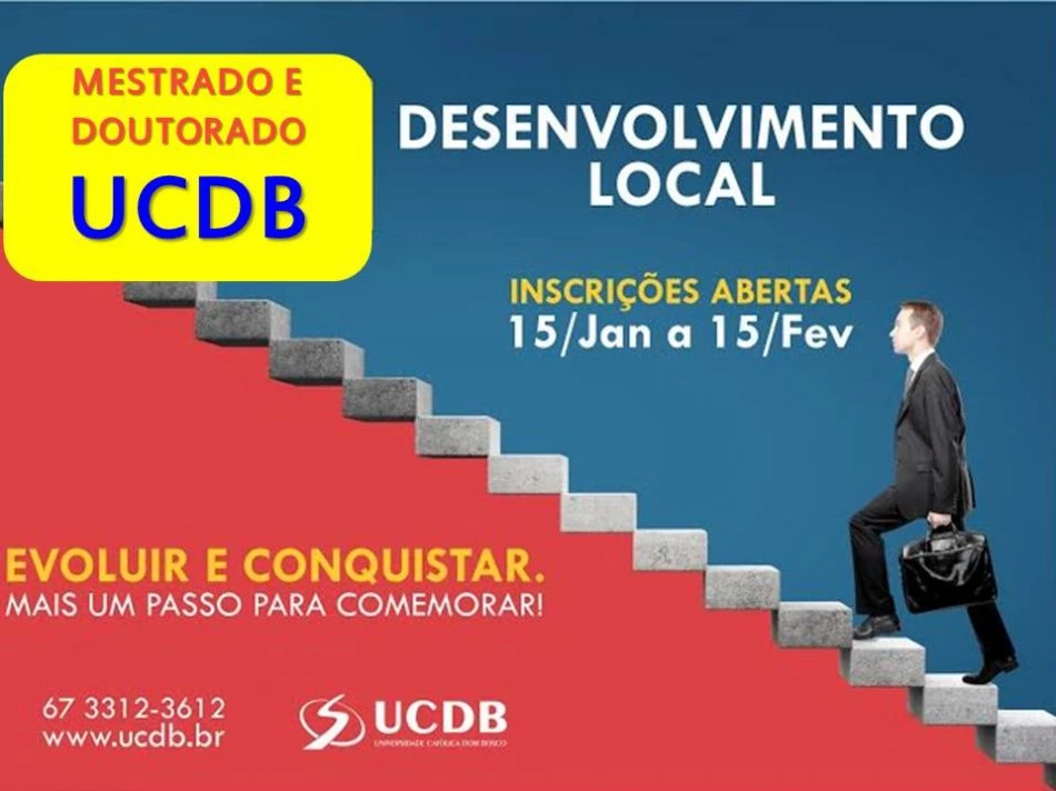 As inscrições para o curso de Doutorado do programa de pós-graduação em Desenvolvimento Local da Universidade Católica Dom Bosco (UCDB) podem ser feitas até a próxima segunda-feira (15), por meio do site da Instituição. São ofertadas nove vagas para o programa.