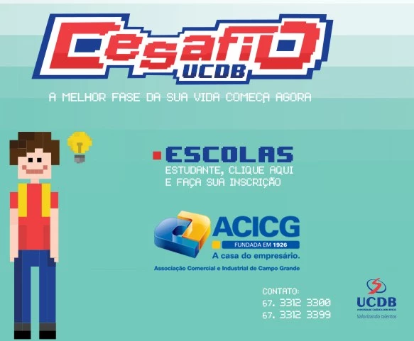 Mais informações sobre o Desafio UCDB 2013 podem ser obtidas pelo telefone (67) 3312-3300 ou pelo sitewww.ucdb.br/desafioucdb.
