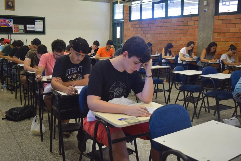 No dia do Desafio UCDB será aplicada uma prova com 62 questões de múltipla escolha, nas disciplinas: Língua Portuguesa, Literatura, Química, Biologia, Física, História, Geografia, Conhecimentos Gerais, Matemática, Língua Estrangeira - Inglês/Espanhol e uma Redação, que é eliminatória.