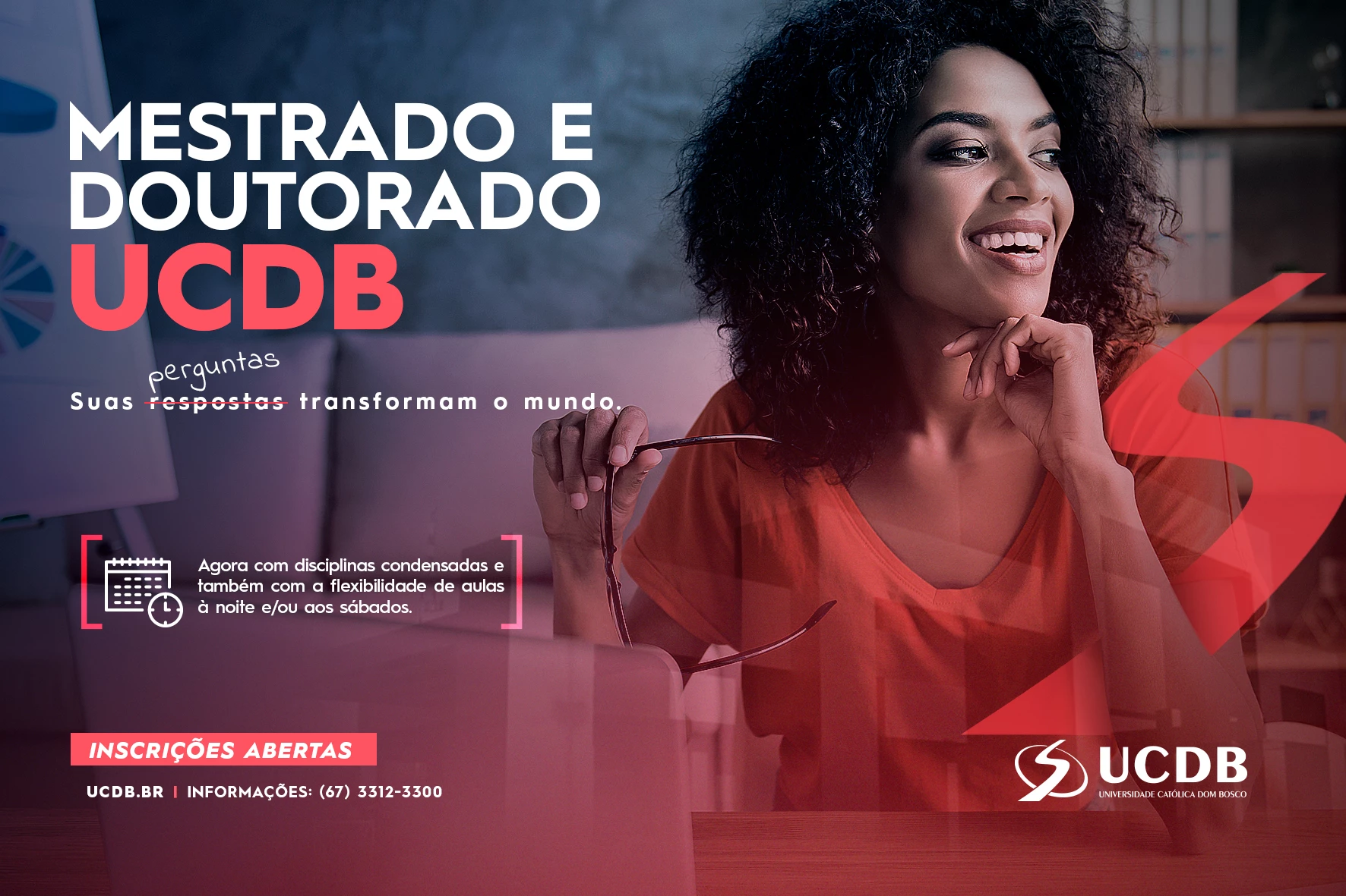 Estão abertas as inscrições para os programas de pós-graduação stricto sensu — mestrado e doutorado (Biotecnologia, Psicologia, Educação, Desenvolvimento Local e Ciências Ambientais e Sustentabilidade Agropecuária) da Universidade Católica Dom Bosco (UCDB). O período de inscrição vai até o dia 16 de novembro, exceto o de Psicologia que vai até o dia 13 e podem ser feitas pela internet.