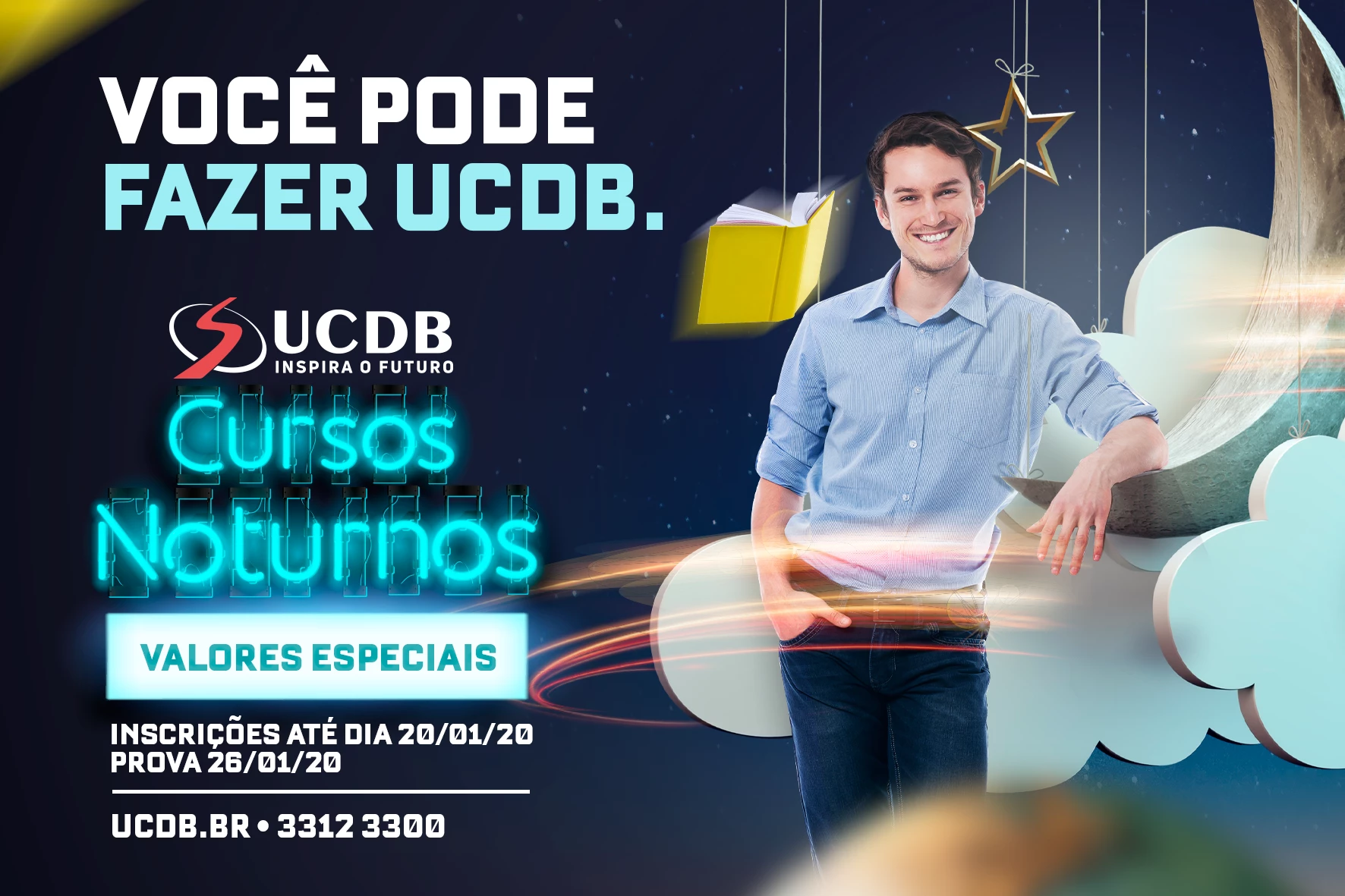 A oportunidade de fazer uma graduação presencial na Universidade Católica Dom Bosco está mais próxima dos vestibulandos. Aqueles que optarem por cursos noturnos terão descontos especiais. Têm valores diferenciados, por exemplo, as graduações noturnas em Agronomia, Biomedicina, Educação Física (licenciatura), Ciência Biológicas (licenciatura), Enfermagem, Farmácia, Fisioterapia, Gastronomia, Gestão de Recursos Hídricos, História, Letras, Pedagogia, entre outros. A lista completa está no site www.ucdb.br.