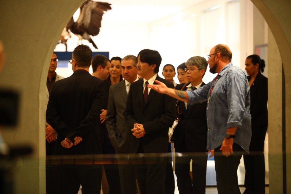 O coordenador do Museu, Dirceu Maurício Van Lonkhuijzen, apresentou o espaço aos visitantes, que passaram pela exposição temporária de Ciências Naturais e a exposição de longa duração de Etnologia. “O príncipe Akishino é doutor em ornitologia e demonstrou especial interesse em conhecer o Museu. Entre as peças que mais chamaram a atenção foram uma ariranha taxidermizada, um fóssil de peixe e a coleção de besouros”, relatou. Cabaças dos povos xavante e de etnias de Mato Grosso do Sul também encantaram os visitantes.