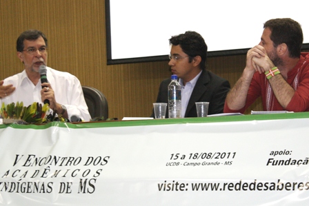 Logo no início do evento, foi organizada uma mesa solene, composta pelo Reitor da UCDB, Pe. José Marinoni, pela coordenadora local da Rede de Saberes da UFGD, Noêmia Moura, pelo indígena egresso do Mestrado em Desenvolvimento Local da UCDB e doutor em História pela PUC-RS, Dr. Wanderley Cardoso, e pelo coordenador geral da Rede de Saberes, Dr. Antônio Brand.