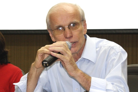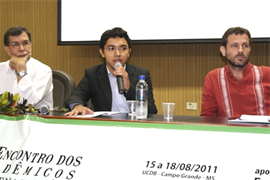 Na sequência, os debatedores da conferência tomaram as posições na mesa. Entre eles, estavam o egresso do curso de Direito da UCDB, Luiz Henrique Eloy Amado, o co-coordenador do Laboratório de Pesquisas em Etnicidade Cultural e Desenvolvimento do Museu Nacional, Dr. Antonio Carlos de Souza Lima, e Dr. Fernando Viana, do Projetos Demonstrativos dos Povos Indígenas (PDPI).