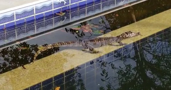 Jacaré invade piscina de chácara em Campo Grande e é resgatado por equipe do Biotério