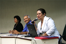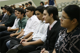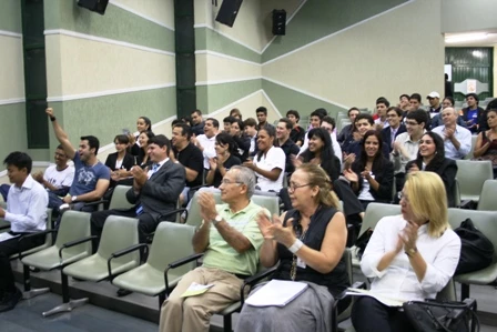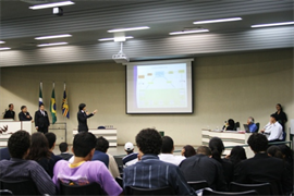 A mesa foi composta pelo coordenador do curso de Administração, professor Dr. Teodomiro Fernandes, pela professora Me. Maria Aparecida Canale e pela professora de Administração de Recursos Humanos, Me. Sonia Oshiro.