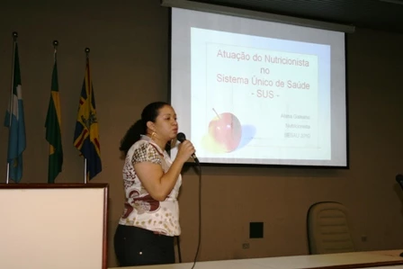 Neste ano, uma das convidadas para proferir palestra egressa da Católica, Alana Galeano, que trouxe aos acadêmicos do curso uma nova visão do trabalho do nutricionista. Ela trabalha no Sistema Único de Saúde (SUS), tanto na atenção básica quanto no Núcleo de Apoio e Saúde da Família (NASF), com pacientes com diabetes e obesidade e na assistência avançada, nos hospitais.