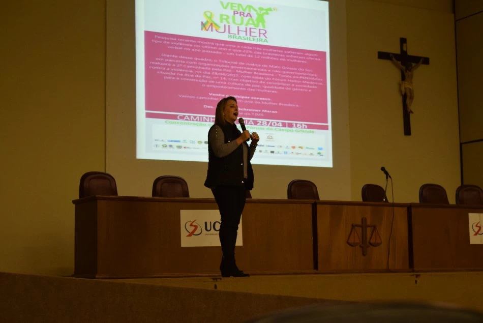 Juíza promove campanha contra a violência doméstica e fala sobre o tema para acadêmicos da UCDB