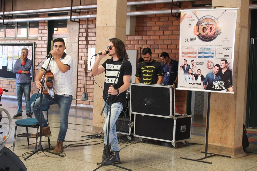 A Festa Junina da Universidade Católica Do Bosco está com data marcada, 9 de junho, mas a animação já começou no campus. Hoje (27), a dupla Mattos & Thobias participou do lançamento oficial da festa, no intervalo do período matutino. A dupla volta a tocar na quarta-feira, às 20h30, no bloco C.