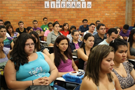 Acadêmicos do curso de Letras da Universidade Católica Dom Bosco (UCDB) participaram na última sexta-feira (30), na sala de Multimídia II (Bloco A), do 2º Café Literário, onde conversaram com o presidente da Fundação Nelito Câmara, Dr. Ricardo Pieretti Câmara. Durante o bate papo, Ricardo mostrou seu trabalho de registro de causos pantaneiros, apresentando em vídeo alguns contadores e seus causos, usados em sua pesquisa sobre o tema.