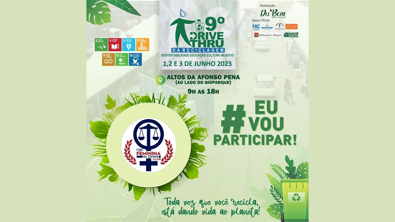 A Liga Feminina de Direito da Universidade Católica Dom Bosco (UCDB) vai promover ação solidária e de sustentabilidade na próxima semana, pois estará participando nos dias 15, 16 e 17 de junho, das 8h às 18h, da 9ª edição do Drive Thru da Reciclagem, nos altos da Avenida Afonso Pena, em Campo Grande. Estudantes e profissionais poderão trocar produtos de higiene e limpeza e ou alimentos não perecíveis, por roupas ou gravatas arrecadadas com autoridades influentes de Campo Grande.