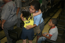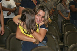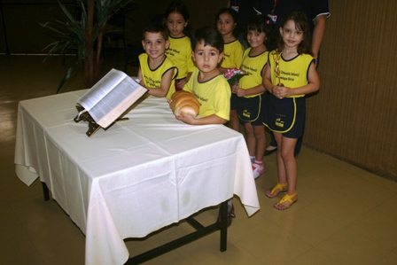 Seis crianças do CEI homenagearam as mães. Cada uma delas levou até o altar, flores, um coração, sementes, uma estrela, uma cruz e o pão, uma forma de representar o que a figura materna significa. Os pequenos ainda abraçaram cada colaboradora representando os filhos.