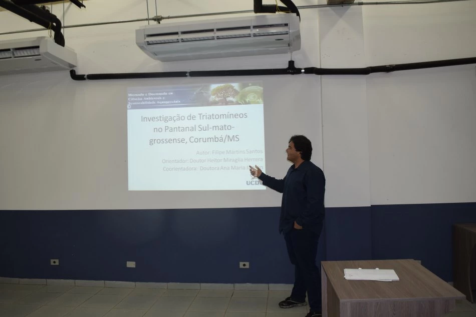 O Programa de Pós-graduação em Ciências Ambientais Sustentabilidade Agropecuária— Mestrado e Doutorado da Universidade Católica Dom Bosco realizou, ontem (24), a banca de defesa de dissertação do mestrando Filipe Martins Santos, com o tema “Investigação de Triatomíneos no Pantanal Sul-Mato-Grossense, Corumbá – MS”. Esta foi a primeira banca de defesa do Programa.