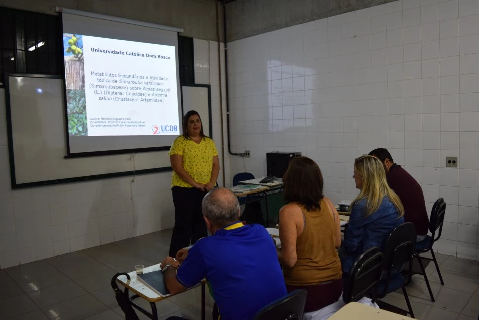 Nathalie Nogueira Paré, discente do Programa de Pós Graduação em Biotecnologia – Mestrado e Doutorado da Universidade Católica Dom Bosco (UCDB) defendeu, na tarde desta terça-feira (14), a dissertação desenvolvida durante o curso. O tema abordado por ela foi Metabólitos secundários e atividade tóxica de Simarouba versicolor (Simaroubaceae) sobre Aedes aegypti (L.) (Diptera: Culicidae) e Artemia salina (Crustaceae: Artemiidae). Pesquisa foi orientada pela professora Dra. Antonia Railda Roel e coorientada pela professora Dra. Rosemary Matias.