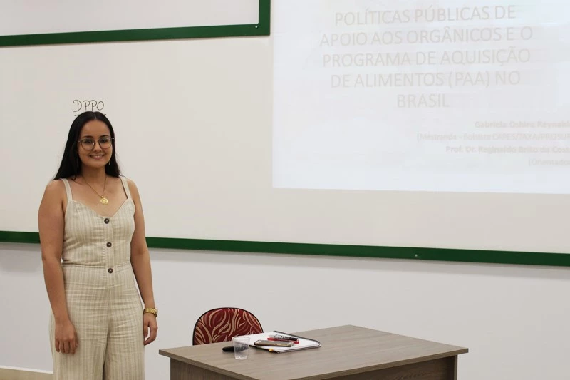 Gabriela Oshiro Reynaldo, mestranda do Programa de Pós-Graduação em Desenvolvimento Local da Universidade Católica Dom Bosco (UCDB) defendeu a dissertação desenvolvida durante o curso, na sexta-feira (22). Orientada pelo docente Dr. Reginaldo Brito da Costa, a pesquisa teve como tema principal “Políticas públicas de apoio aos orgânicos e o Programa de Aquisição de Alimentos (PAA) no Brasil”.
