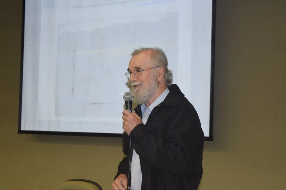 O convidado falou sobre “Plantas do Pantanal — Potencial e uso”, relatando sua experiência como pesquisador da Embrapa e professor da UFMS.